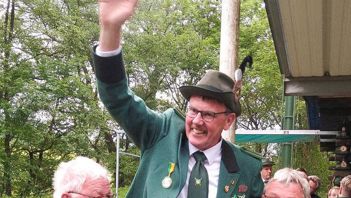 Bad Driburg-Pömbsen. Nach zweijähriger Pause fand am das erwarteten Königschießen am Himmelfahrtstag statt. Wilfried Rüthers konnte die Königswürde mit dem 123 Schuss für sich erringen, in dem er den Holzadlers von der Stange holte. Unter großen Beifall wurde er von den Schützenbrüdern umjubelt.