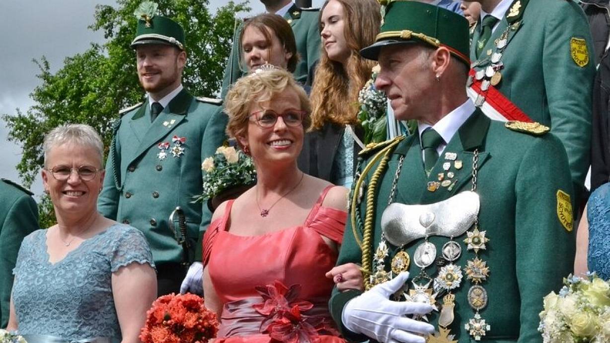 Bad Driburg-Alhausen. „Zwei Jahre stand das Weberdorf still – dann ist kein Schützenfest auch keine Lösung. Danke Biene & Olli, Moni & Udo, Trixi & Tinus“, stand auf dem Transparent, das am Scheunentor auf dem Hof der diesjährigen Majestäten der St.-Vitus-Schützengilde, Sabine Kleine und Oliver Jochmann, angebracht war. Besser hätte man die Stimmung, die an vergangenen Wochenende in dem kleinen Bad Driburger Ortsteil herrschte, wohl nicht auf den Punkt bringen können: Endlich wieder Schützenfest.
