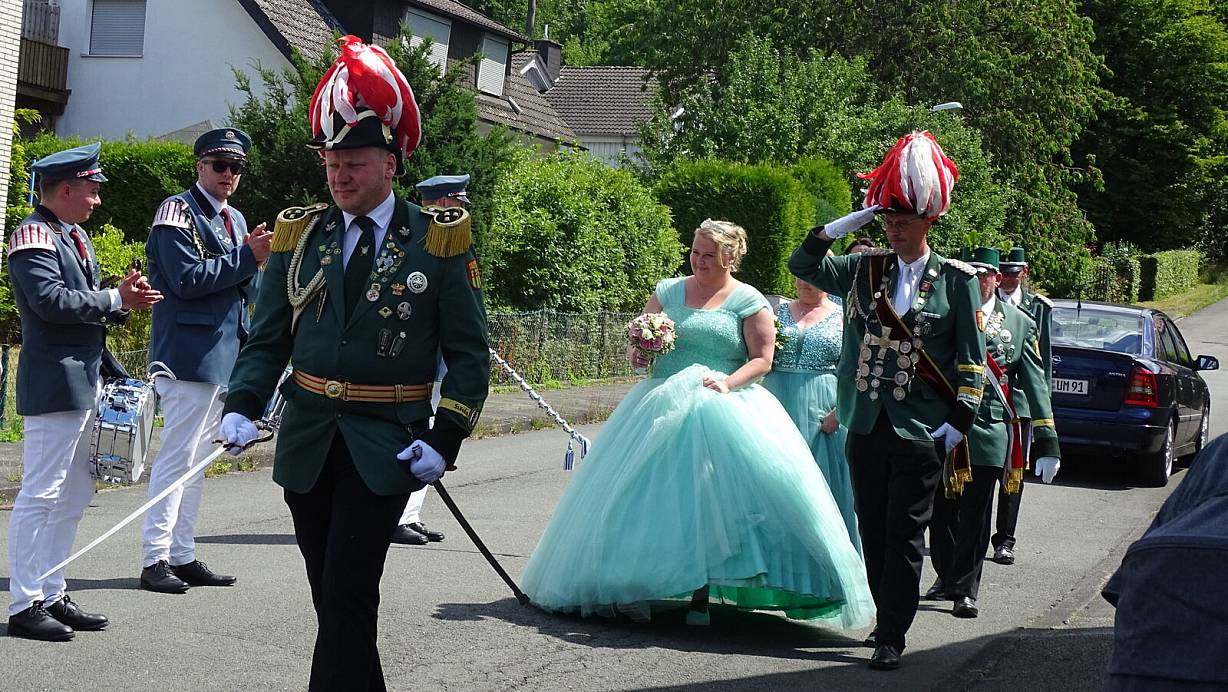 Mintgrüne Robe, azurblauer Himmel: Herster Königspaar flaniert durchs Dorf
