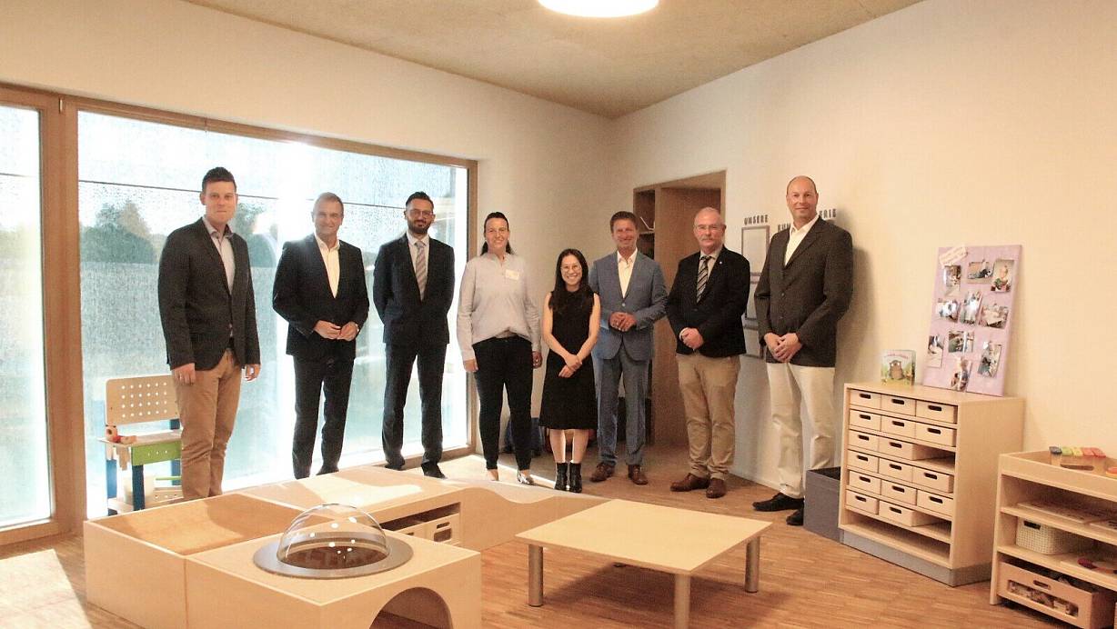 Die Repräsentanten des neuen Kindergartengebäudes freuen sich über die Fertigstellung. | © Burkhard Battran