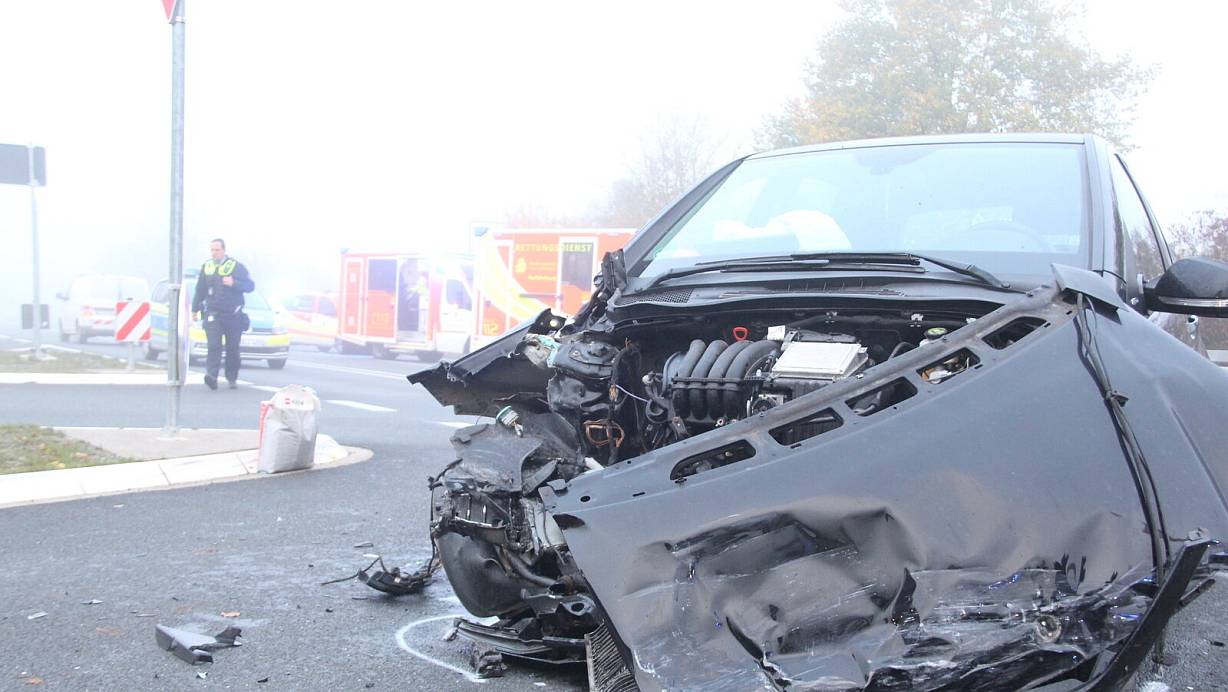 Vollsperrung nach Kollision im Morgennebel auf B64 zwischen Brakel und Bad Driburg