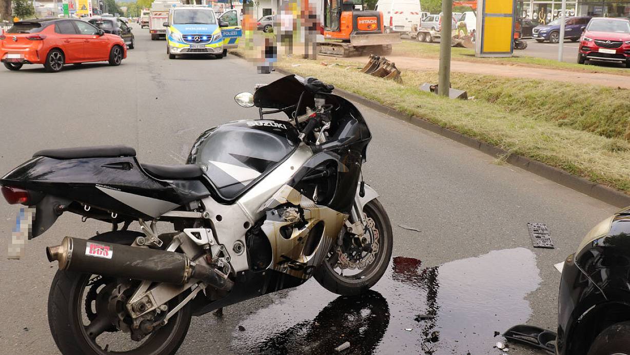 Das Motorrad wird bei dem Unfall in Bad Driburg über den Boden geschleudert. | © Polizei