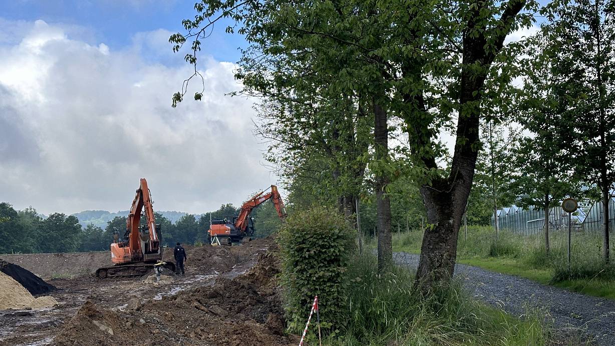 Die Bagger rollen: Entsteht hier ein Fußballpatz? Rechts sind Gewächshäuser zu sehen, die Baustelle grenz direkt an den Gräflichen Park an. | © Ralf T. Mischer