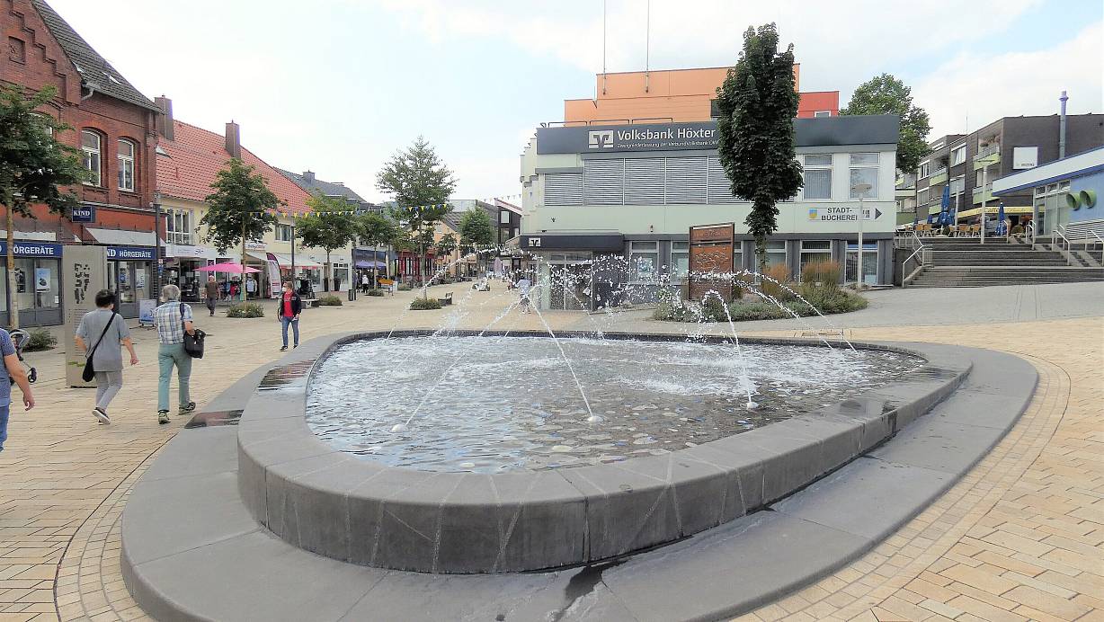Der Leonardo-Brunnen in der Innenstadt ist der Startpunkt der Fußgängerzone in Bad Driburg. Auch die Kurstadt hat mit Leerständen zu kämpfen. | © Stadt Bad Driburg