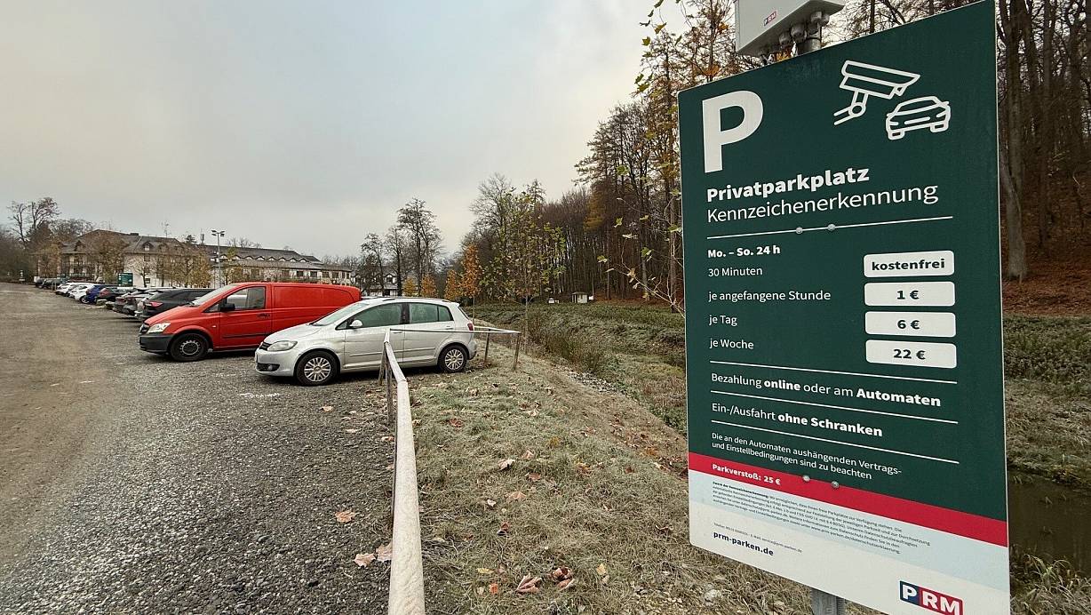 An der Einfahrt auf den Parkplatz erklärt dieses Schild den Autofahrern, was das Abstellen des Fahrzeuges kostet - und dass Kameras die Zu- und Abfahrt überwachen und Kennzeichen erfassen. | © Ralf T. Mischer