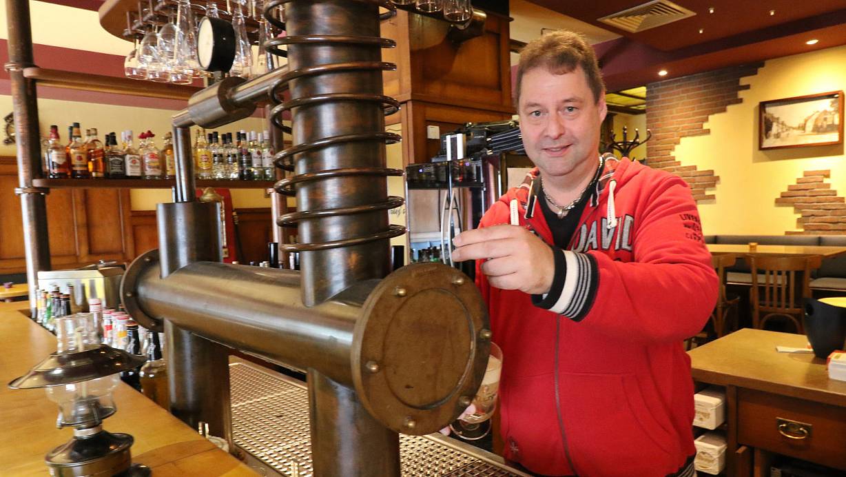 „Ich könnte ganze Bücher schreiben": Das sagt Inhaber und Eigentümer Peter Hoffmann, hier am Zapfhahn vom Marley’s. | © Simone Flörke