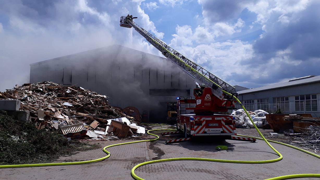 Inhalt eine Lagerhalle stand in Flammen.