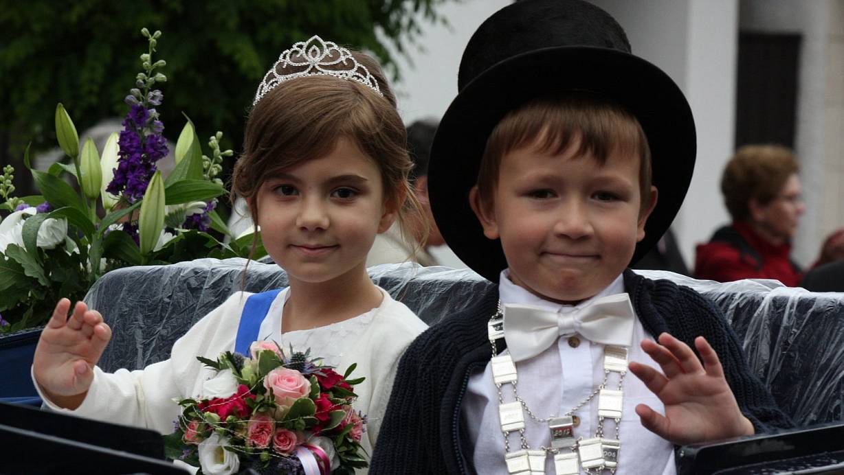 Das Kinderschützenkönigspaar Damian Brzezina und Aurella Tara in der Kutsche. | © Torsten Wegener