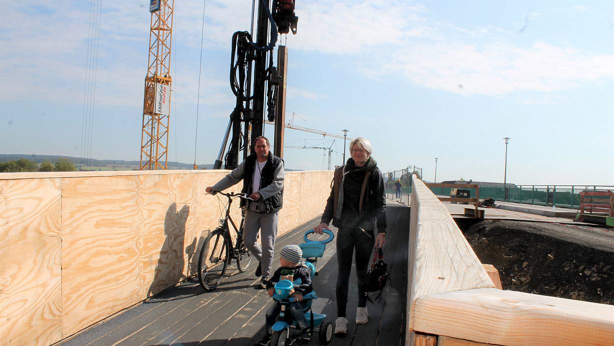 "Patzige Reaktionen": Mutter Maria Siemens (r.) nutzt täglich mit den Kindern den Fußweg über die alte Beverunger Weserbrücke. Sie ärgert sich über Radfahrer, die trotz Verbot einfach drüberfahren. | © Manuela Puls