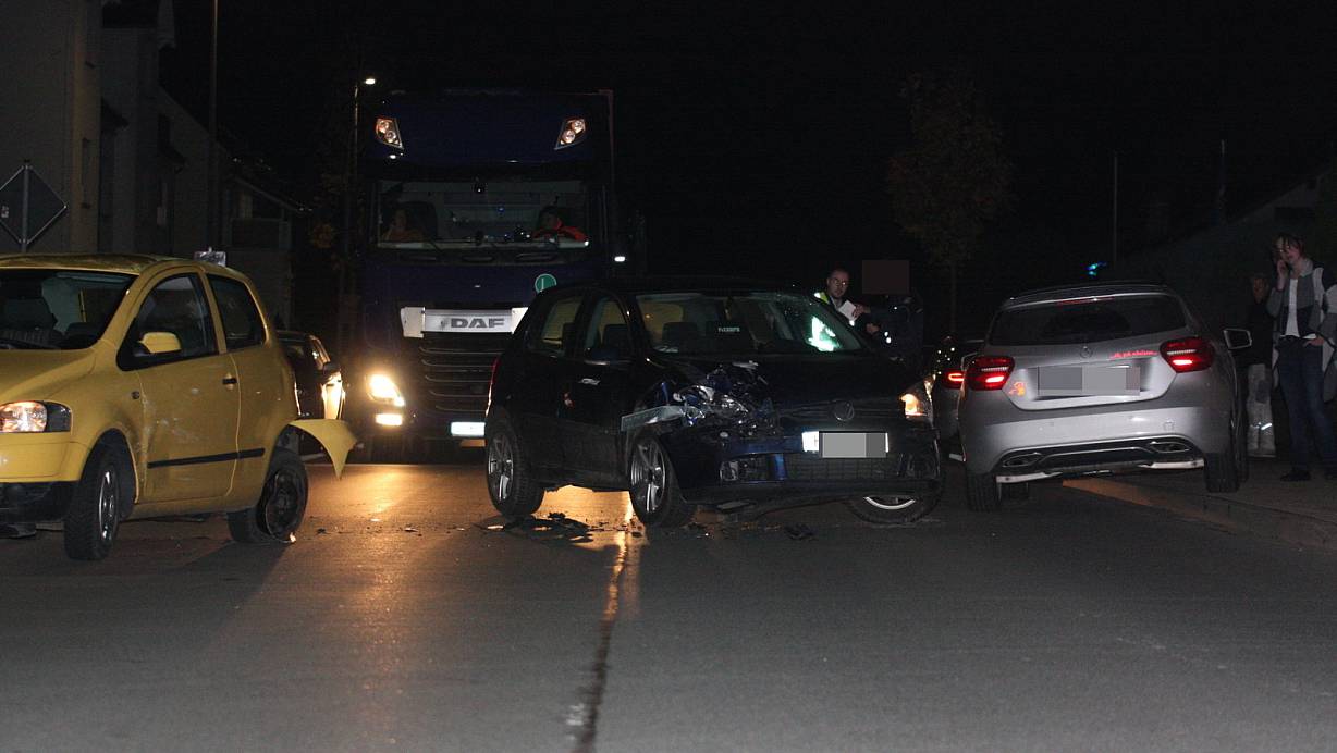 Der Fahrer des Golfs (M.) fuhr vermutlich auf den VW Fox (l.) auf. Drei weitere Fahrzeuge wurde durch den Aufprall zusätzlich beschädigt. | © Torsten Wegener