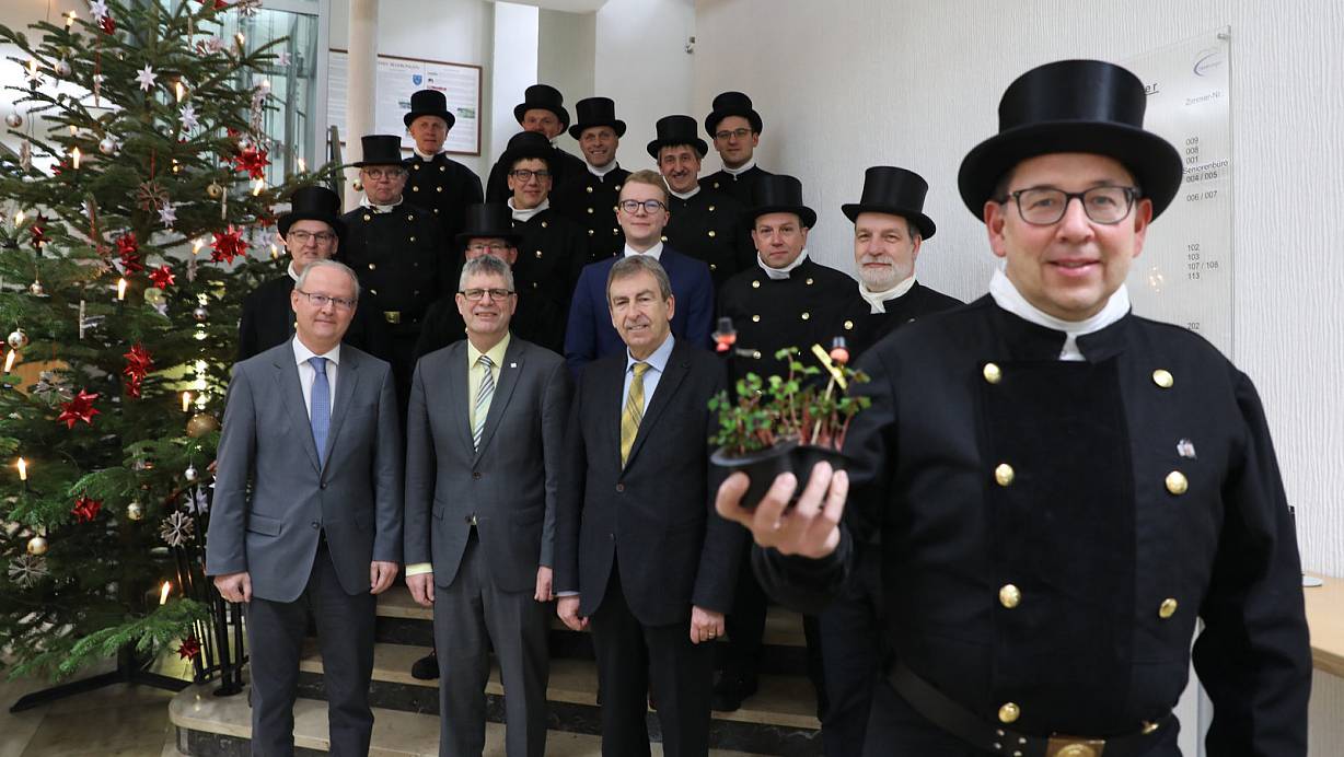 Die Schornsteinfegermeister treffen sich im Rathaus in Beverungen und überbringen die Neujahrsgrüße an die Bevölkerung.