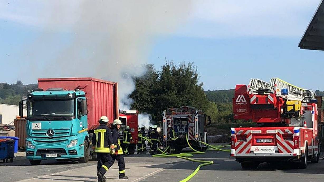 Die Feuerwehr löscht einen Brand in einem Beverunger Entsorgungszentrum. | © Nicole Niemann