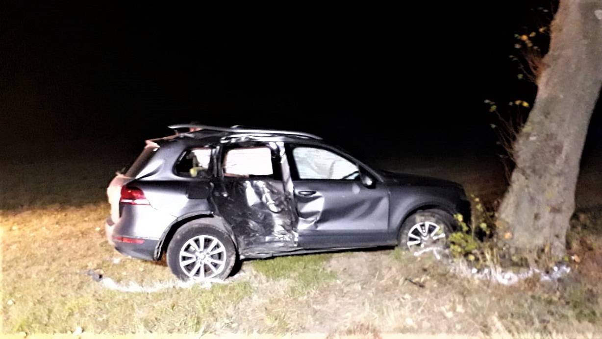 Ihr Auto kam nach einer Kurve von der Straße ab und kollidierte mit einem Baum.
