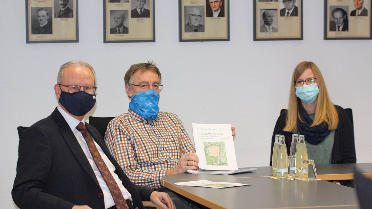 Bürgermeister Hubertus Grimm (v. l.), Martin Finke und Kathrin Scholtz stellten den Haushaltsplanentwurf vor. | © Torsten Wegener