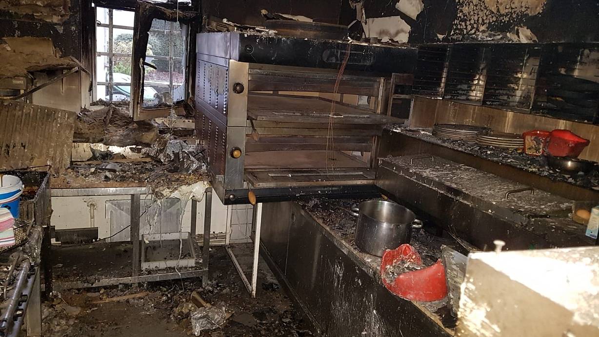 Alles ist verkohlt in der Küche. Um den Berieb wieder zu starten, braucht es eine Grundsanierung und neue Gerätschaften. | © Torsten Wegener