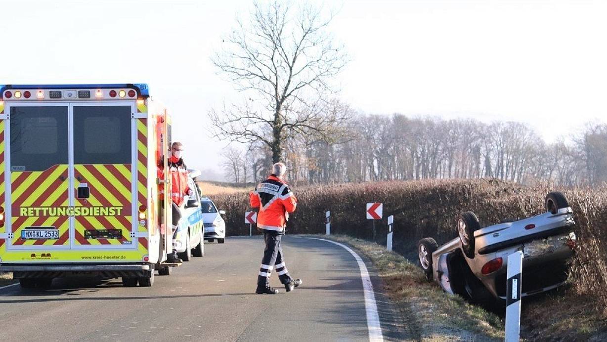 Beverungen-Drenke. Bei einem Unfall auf der Landesstraße 837 bei Beverungen überschlug sich am Dienstagmorgen ein Auto. Gegen 9 Uhr war ein 33-Jähriger aus Höxter mit einem Peugeot 206 von Drenke auf der Höxterstraße Richtung Tietelsen unterwegs. Der Peugeot geriet nach Polizeiangaben in einer Rechtskurve ins Schleudern, überschlug sich und kam auf dem Dach liegend links im Straßengraben zum Stillstand.