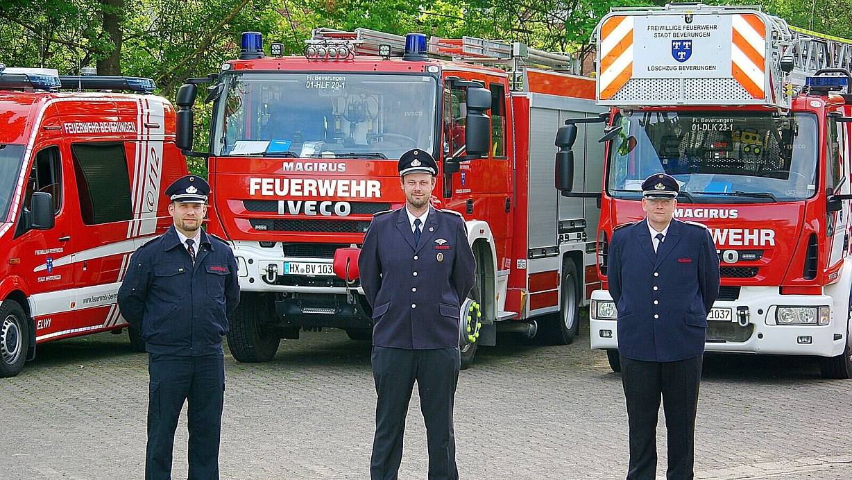 Bedingt durch die Corona-Pandemie war der Start der neuen Löschzugführung etwas ruhiger als normal. So konnte die Übergabe der administrativen Arbeiten ohne praktischen Dienstbetrieb stattfinden. Das heiße jedoch nicht, dass sich die Drei ausgeruht haben: Mehrere Online-Dienste wurden seit der Amtsaufnahme durchgeführt, so sind bereits die meisten theoretischen Pflichtthemen bearbeitet worden, bevor wieder mit Präsenzunterricht am Gerätehaus begonnen wurde. Dieser wurde nach entsprechender Vorbereitung mit den bestehenden AHA-Regeln sowie den 3G (geimpft, genesen oder getestet) in den vergangenen Wochen wieder aufgenommen. „Man merkt, dass alle die Dienstabende und den Feuerwehrdienst vermissen. Wir freuen uns auf den Neustart." Mit dem Dienstbeginn freut sich die Feuerwehr Beverungen über jeden Interessierten, der in die Feuerwehr eintreten möchte. Dazu können sich Interessierte über die Kontaktadressen auf der Homepage der Feuerwehr Beverungen melden. „Jeder neue Interessent bekommt bei uns einen Paten an die Hand, der ihm den Einstieg ins Feuerwehrleben so einfach wie möglich macht", so die neue Löschzugführung.