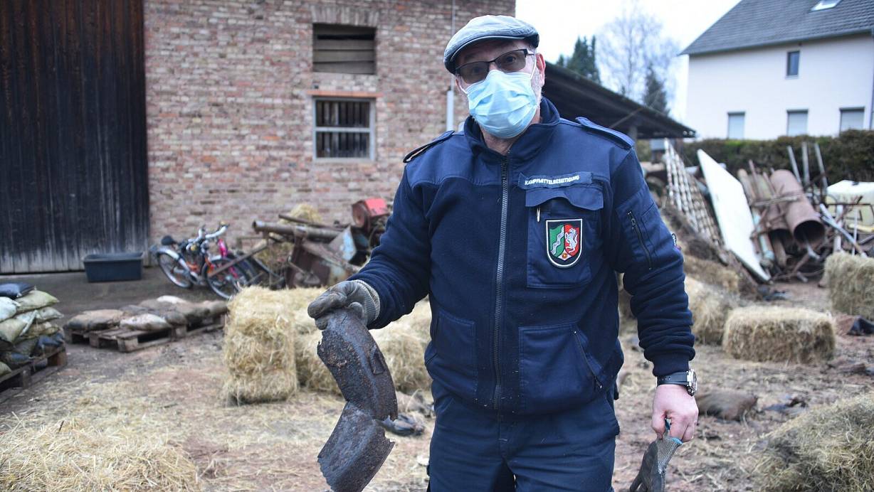 Ein Landwirt baggert nichtsahnend auf seinem Grundstück und stößt auf eine Mine aus dem Zweiten Weltkrieg. Die Polizei evakuiert, der Kampfmittelräumdienst rückt an.