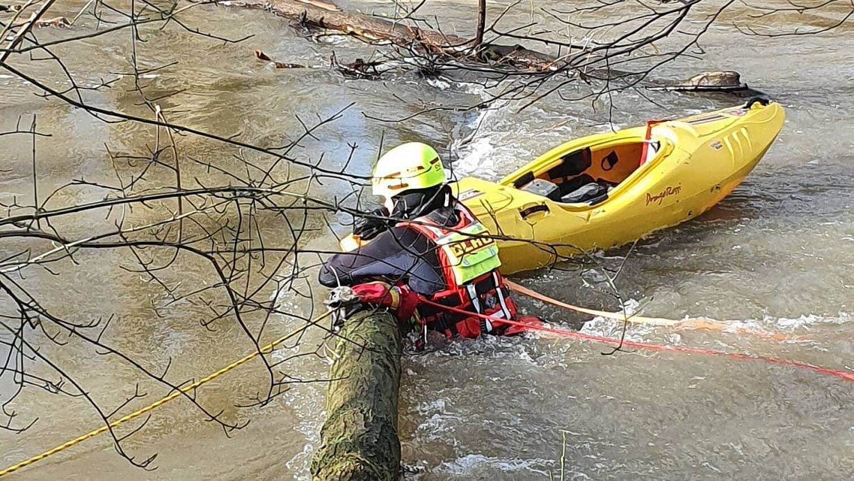 Das Kanu mussten speziell ausgebildete Retter von der DLRG bergen. | © DLRG Ortsgruppe Brakel