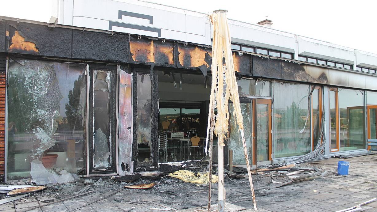 Auf der Dachterrasse stand eine Sitzgruppe aus Kunststoff in Flammen, das Feuer griff auf die Mensa des Gymnasiums über. | © Manuela Puls/Archiv