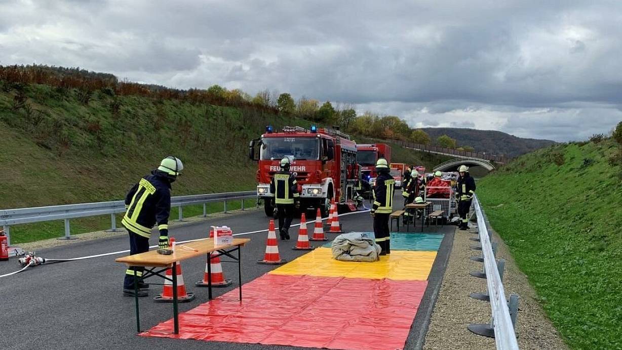Kreis Höxter/Beverungen. Noch vor dem Wintereinbruch absolvierten die Einsatzkräfte der Dekontaminationskomponente des Kreises Höxter in Zusammenarbeit mit dem Löschzug Beverungen eine gemeinsame Einsatzübung auf dem kurz vor der Freigabe stehenden Streckenabschnitt der B83n zwischen Herstelle und dem hessischen Deisel.