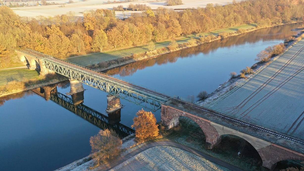 Seit 30 Jahren außer Betrieb: Die Bahnstrecke Holzminden – Scherfede führte über diese Weserquerung. Ein Blick in die Geschichte und die Eisenbahn-Chronik.