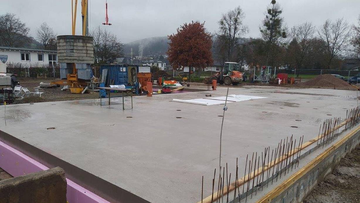 Das Fundament des neuen Freibad-Umkleidegebäudes. Im Sommer wird hier aber noch keine Nutzung möglich sein. | © Stadt