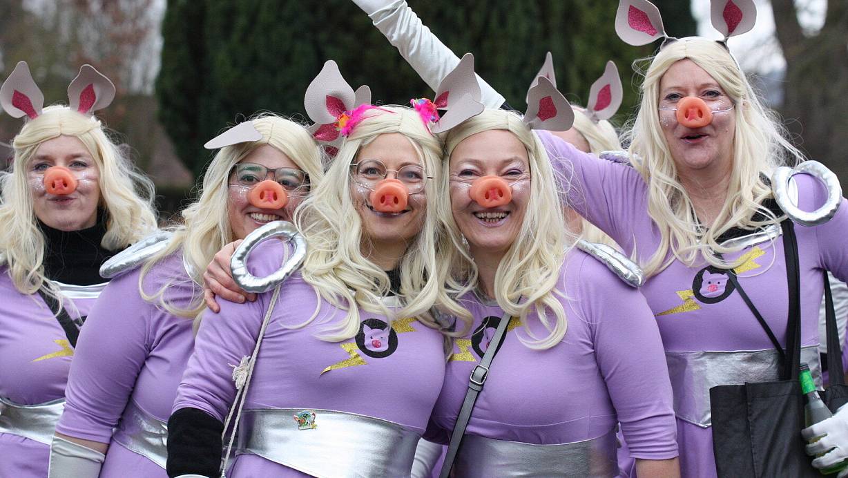 Schweine im Weltall: Die geklonte Miss Piggy war beim Umzug des Carnevalvereins Weserbrücke ohne ihre Crewmitglieder Captain Link Ringelschwanz und den geheimnisvollen Dr. Julius Speckschwarte unterwegs. | © Torsten Wegener