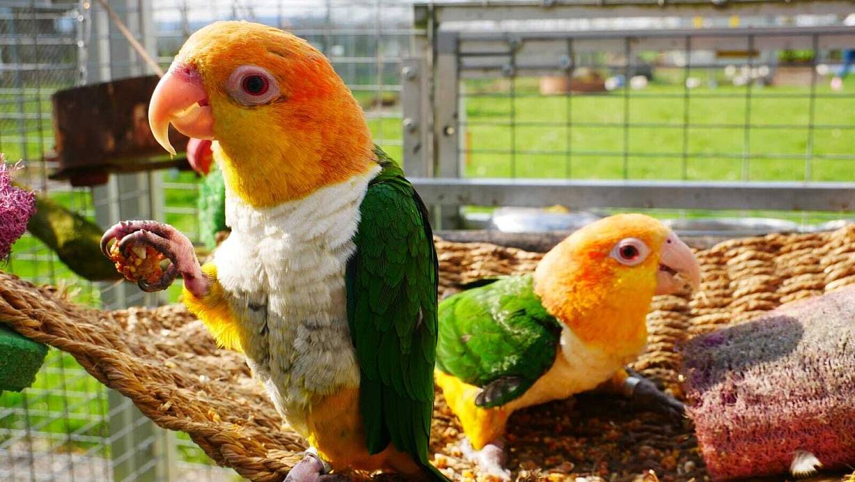 Diese Rostkappenpapageien sind zwei von rund 130 Großpapageien, die auf dem Papageienhof leben. | © Papageienhof Dreiländereck