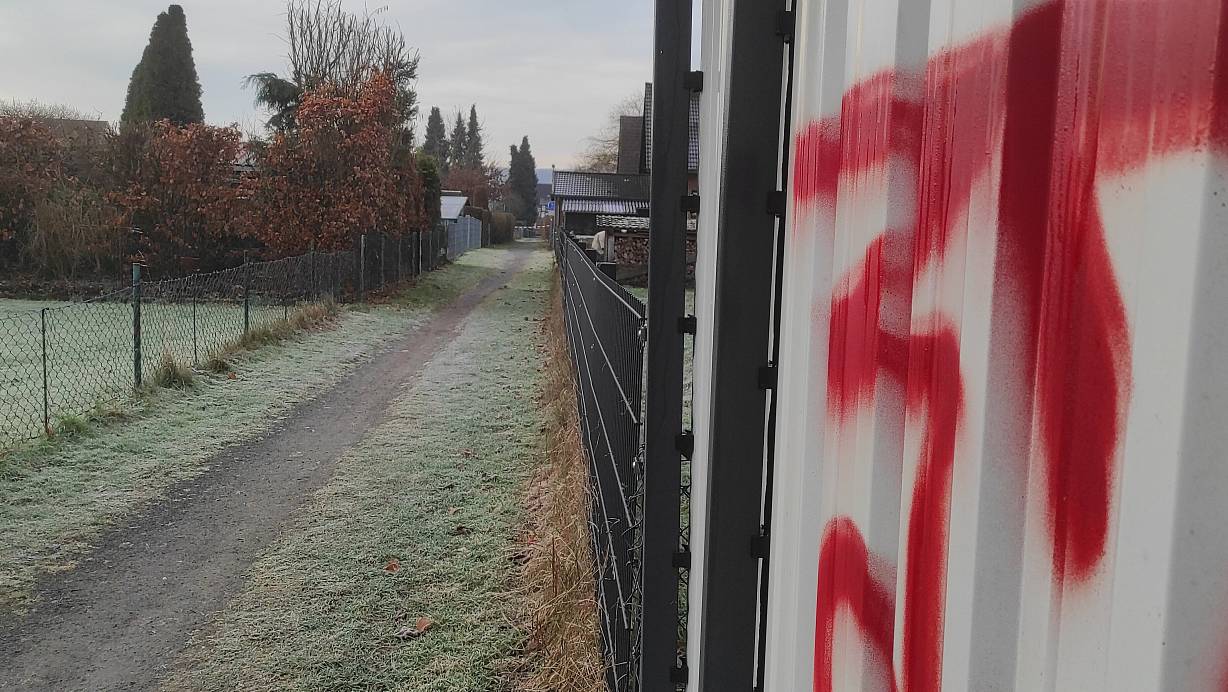 Ein Fuß- und Radweg, der die Bahnhofstraße in Lauenförde mit der Löns- und Meinbrexer Straße verbindet und direkt neben einer Apotheke entlang führt, wurde durch die Polizei abgesperrt. | © Svenja Ludwig