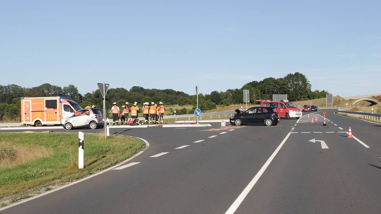 Am Dienstagabend gegen 18.55 Uhr war ein grauer Smart von Würgassen kommend auf der L763 unterwegs und wollte nach links auf den Auffahrtsarm nach Herstelle einbiegen. Zunächst kamen dem 18-jährigen Smart-Fahrer zwei Fahrzeuge entgegen, die ebenfalls auf den Abfahrtarm einbiegen wollten.