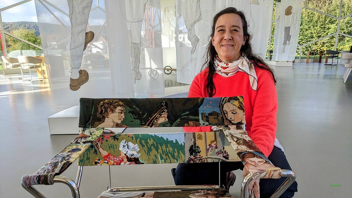 Textilkünstlerin Kerstin Bruchhäuser und Tecta-Vertreterin Daniela Drescher aus Lauenförde machen aus alten Gobelins modernes Bauhaus-Design.