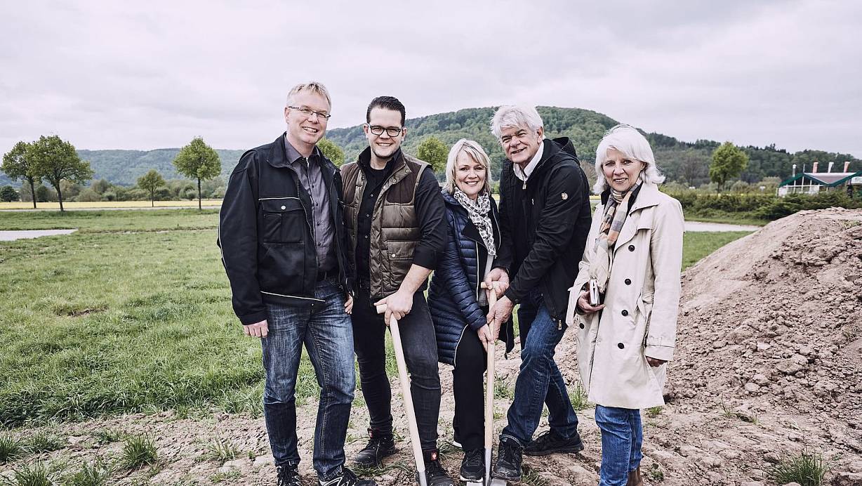 Lutz Meseck (Betriebsleiter Ölmühle; v. l.), Sebastian Baensch (Geschäftsführer), Gudrun Baensch (Geschäftsführerin), Werner Baensch (Gründer und Inhaber) sowie Architektin Susanne Krekeler. | © Ölmühle Solling