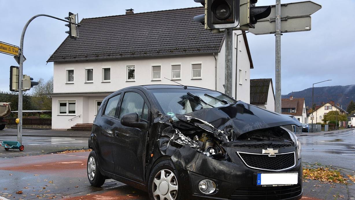 Der Pkw wurde bei der Kollision im Frontbereich zerstört. | © Thomas Kube
