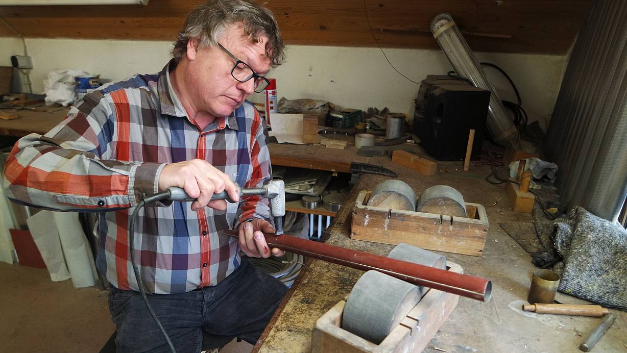 Anspruchsvolles Handwerk: Orgelbaumeister Bernd Simon in seiner Werkstatt. Jede Pfeife wird 50 Mal in die Hand genommen bis sie fertig ist. 80 Prozent des Orgelbaus sind jedoch Schreinerarbeiten. | © Stefan Boes