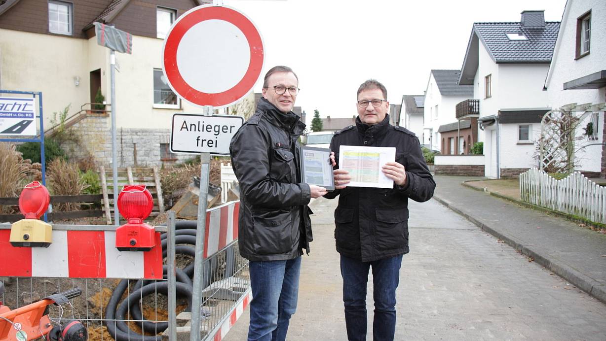 Im Wiesenweg, der Bischof-Bruns-Straße und im Liboriweg werden in Borgholz Wasserleitungen und Hausanschlüsse saniert, Erdgasanschlüsse und Leerrohre fürs Breitband gelegt. | © Dieter Scholz