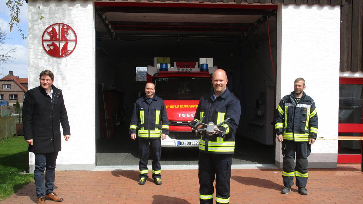 In Großeneder hat die Borgentreicher Feuerwehr eine moderne Flugdrohne stationiert. Sie wird nicht nur die Feuerwehr bei ihren vielfältigen Einsätzen unterstützen, sondern auch dem Tierschutz zugute kommen.