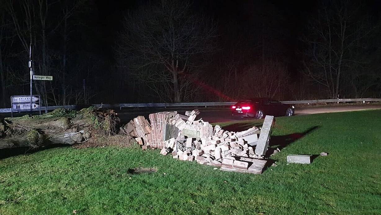Das zerstörte Heiligenhäuschen am Natinger Weg. | © Feuerwehr