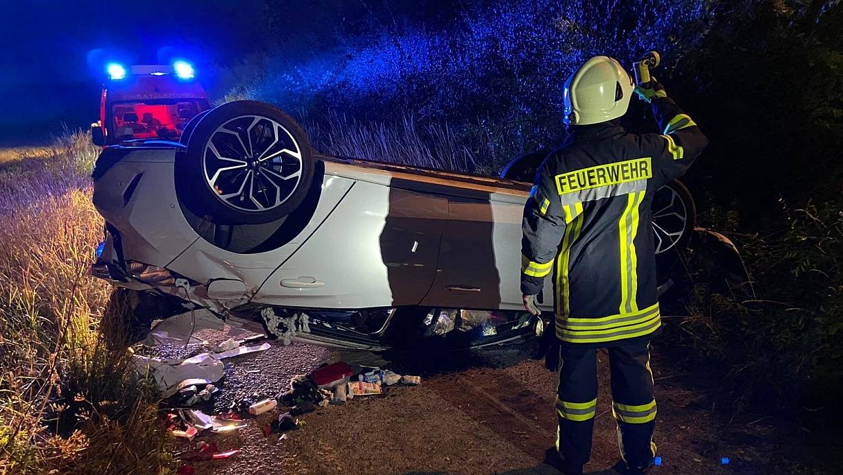 Auf dem Dach blieb das Auto, das zuvor eine Böschung an der B 241 hinabgestürzt war, liegen. | © FFW Borgentreich