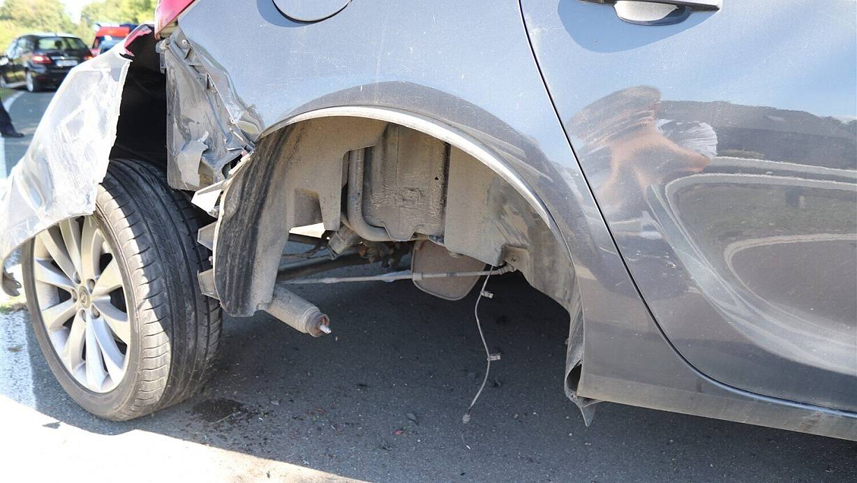 Aufgrund der engen Fahrbahn kam es dennoch zu einem seitlichen Zusammenstoß, wobei beide Außenspiegel beschädigt wurden. Durch das Ausweichen stieß der Opel dann mit dem Heck gegen die Leitplanke, wodurch die Hinterachse herausgerissen wurde. Der Mercedes stieß ebenfalls gegen die Leitplanke und wurde an der Front beschädigt.