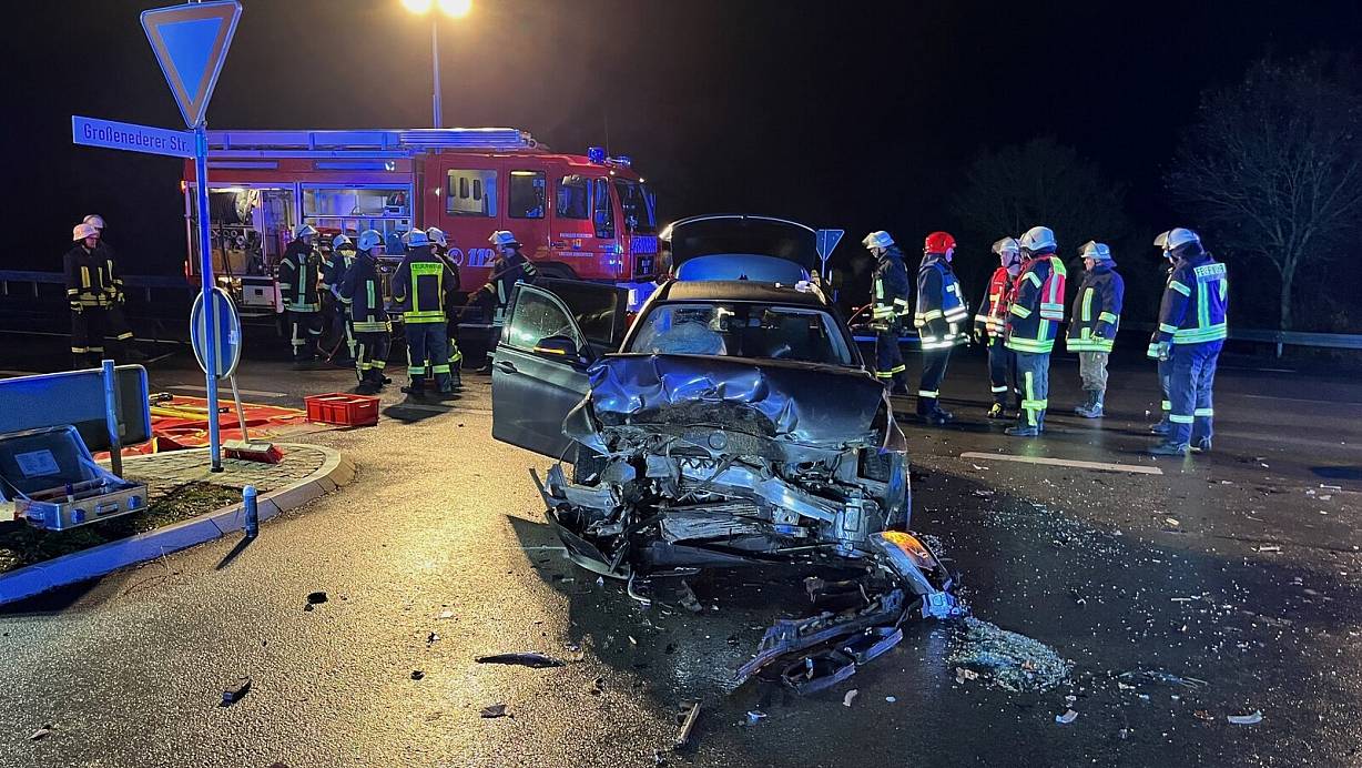 Der Fahrer des Pkw wurde durch die Fahrertür gerettet. Dabei wurde die Tür entfernt. Er wurde anschließend in ein Krankenhaus gebracht. Der Fahrer des Sprinter wurde nicht verletzt.