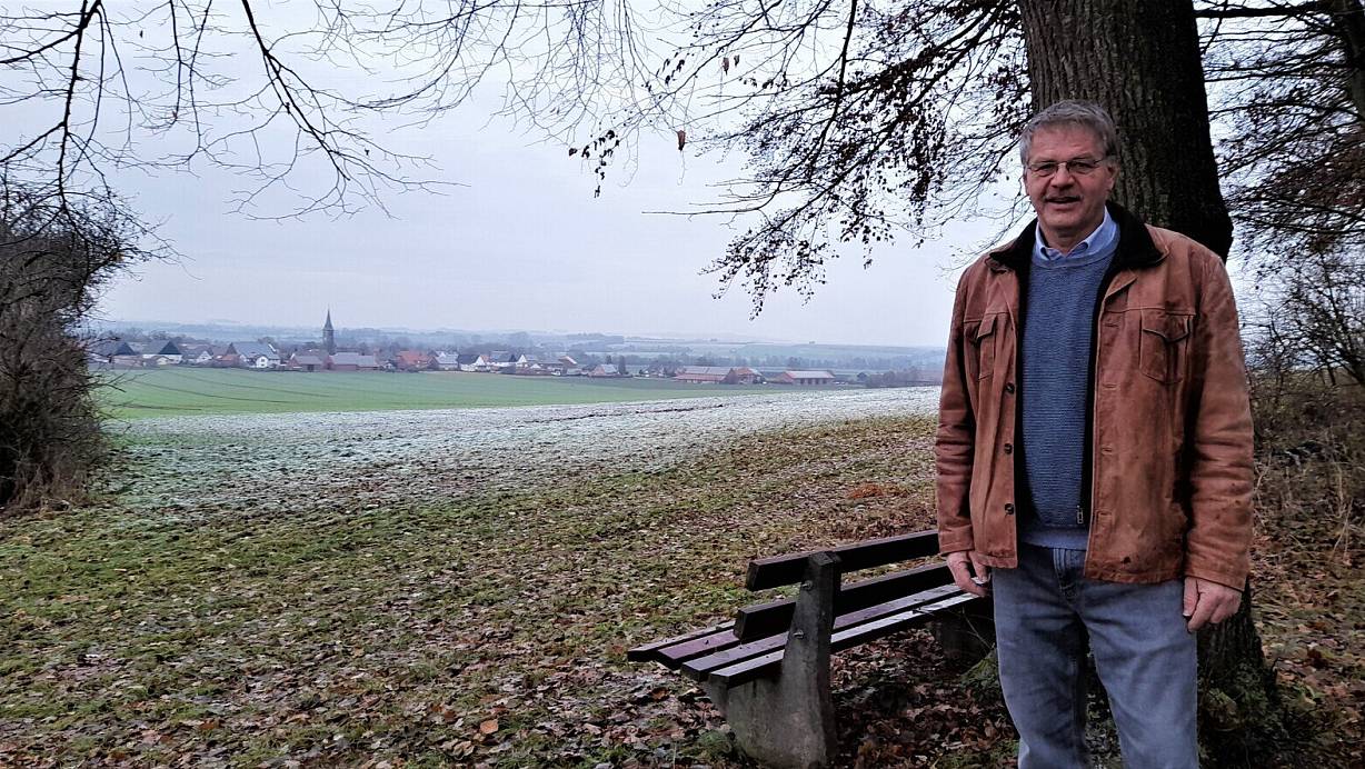 Peter Wille am Weißholz mit Blick auf sein Heimatdorf. Auf der anderen Seite des Weißholzes ist Lieblingsplatz zwei – mit Blick auf die Heimatregion. | © Simone Flörke