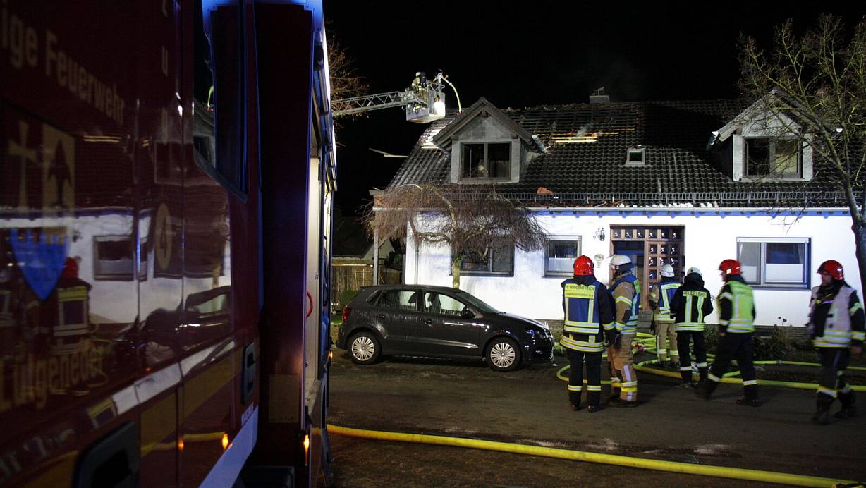 Der Dachstuhl des Wohnhauses am Stadtweg in Großeneder stand in weiten Teilen in Flammen. Foto: Dieter Scholz | © Dieter Scholz