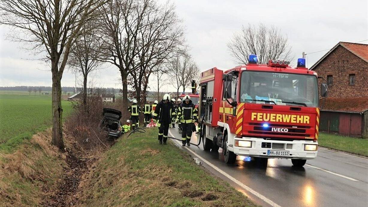 Borgentreich. Wie Polizei meldet, war bei einem Verkehrsunfall auf der Landesstraße 838 kurz vor der Ortschaft Körbecke am Montagnachmittag ein Auto in einen Graben geraten und gegen einen Baum gestoßen. Zwei Personen seien leicht verletzt worden.