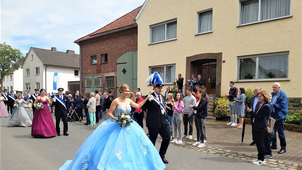 Andre Sommerhoff und Maren Blömeke werden beim Festumzug in Körbecke gefeiert. Die älteren Schützen und auch die Jüngsten sind mit dabei.