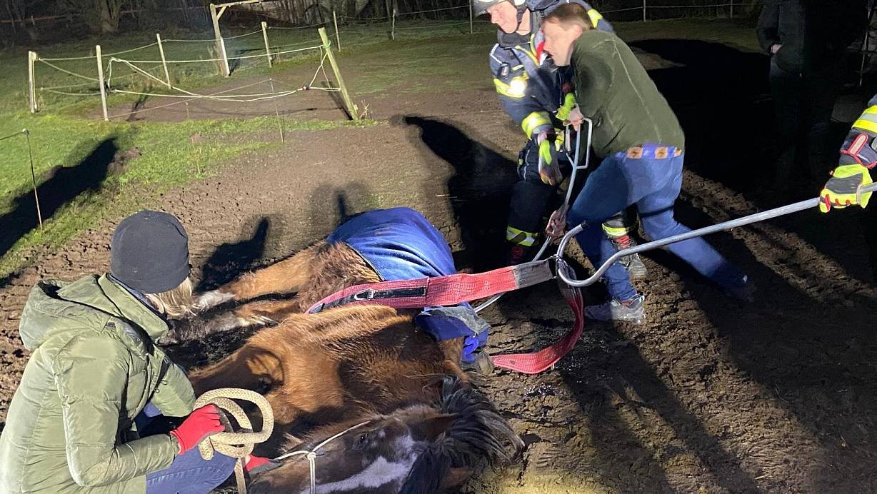 „Wir haben die Tragegurte unter dem Tier hindurchgeführt, es dann mit einem Radlader angehoben und ganz vorsichtig wieder abgesetzt. Dann war die Sache auch schon erledigt“, erzählt er. Und: „Das Pferd lief gleich wieder.“