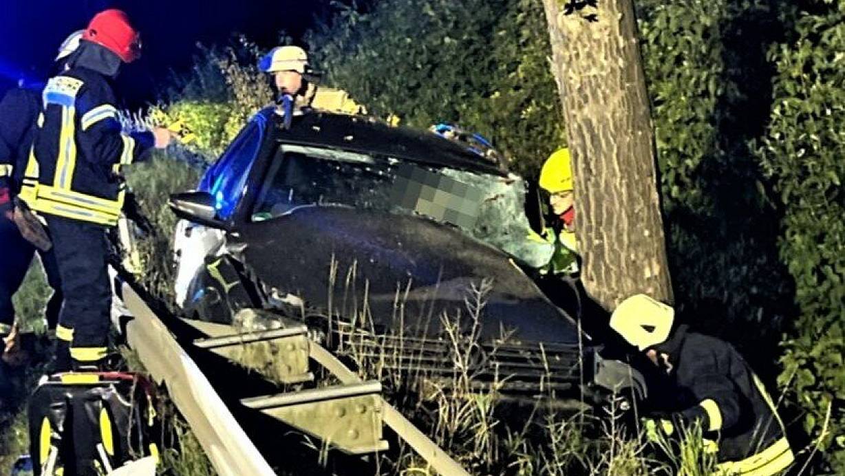 Auf der B241 war ihr Auto nach einem Unfall zwischen Baum und Leitplanke eingeklemmt.