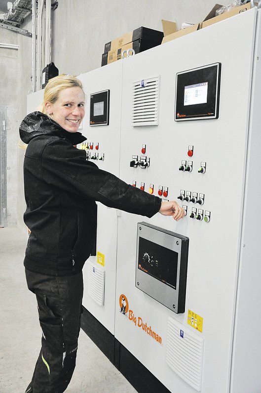 Derzeit ist die Agrarbetriebswirtin dabei die Bioeier-Produktion und Vermarktung deutlich auszuweiten. Langfristig sollen die Eier über den eigenen Laden, Direktvermarkter und über sogenannte „Regional-Theken" in heimischen Supermärkten verkauft werden. So hat sie einen neuen Stall für 6.000 Bio-Freilandhühner bauen lassen. Es ziehen Legehennen der Herkunft „Lohmann braun" – aufgeteilt in zwei Gruppen zu je 3.000 Tiere – in das neue 60 mal 30 Meter große Stallgebäude ein. Pro Tier seien vier Quadratmeter Auslauffläche vorgeschrieben. „Bei uns haben sie sechs", betont Meyer-Fehring. Unter den Hühnern befinden sich auch 60 Hähne. Sie seien sozusagen die Aufpasser und sollen die Hennen ins Freigelände locken. Durch Luken gelangen die Tiere vom Innenstall in den „Wintergarten" (Kaltscharrraum). Von dort geht es durch weitere Luken auf die 3,6 Hektar große umzäunte Freifläche, wo sich die Hennen nach Herzenslust bewegen können. „Im Herbst werden wir hier noch Büsche und Bäume pflanzen, damit sich die Tiere vor möglichen Raubvögeln schützen können. Bis diese aber groß genug sind, werden wir uns mit Rundbögen behelfen", so Anna Sophie Meyer-Fehring.