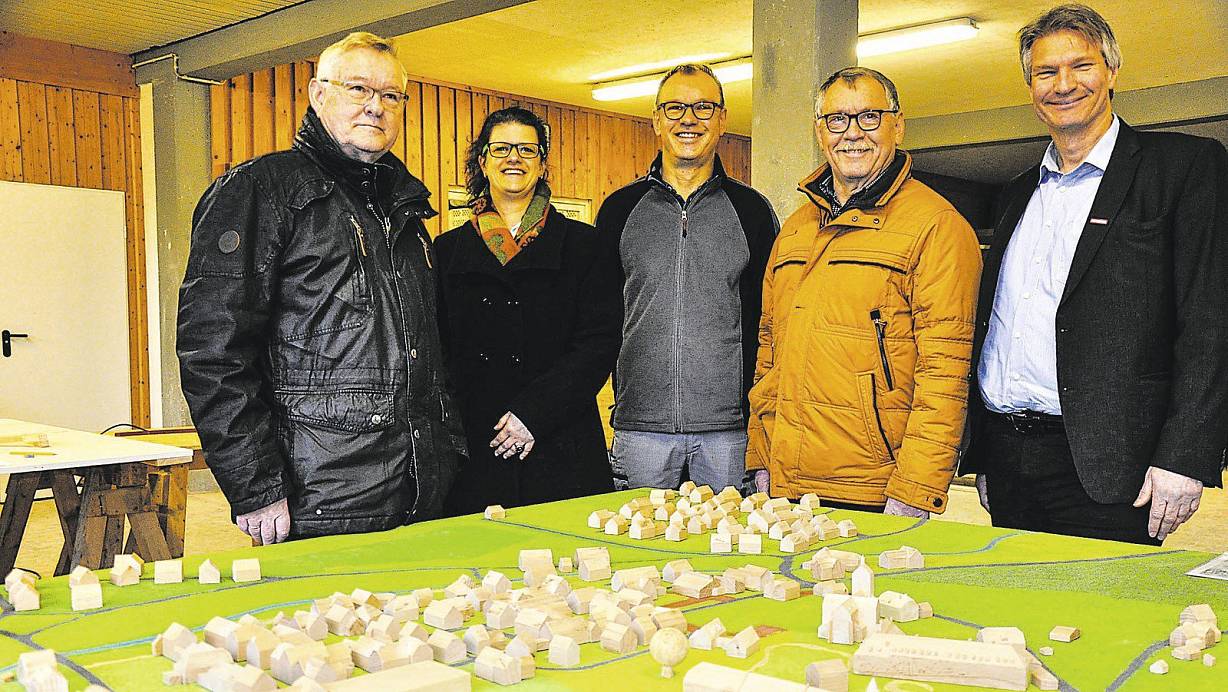 „Die Recherche war nicht einfach. Es gab weder entsprechende Schriftstücke noch Pläne. Aber beim Katasteramt des Kreises Höxter sind wir dann schließlich weitergekommen", erzählte Franz-Josef Wolff vom Festausschuss Gehrden. Zusammen mit Ferdinand Gerdes, der das Modellbau-Projekt mit begleitet, freute er sich über den ersten, recht gelungenen Nachbau aus Holz. „Auffällig sind die vielen Freiflächen, beispielsweise zwischen dem ehemaligen Rathaus und der Kirche. Hier standen früher einmal fünf Bauernhöfe. Sie wurden anlässlich der geplanten großen Dorfsanierung in den 60er Jahren abgerissen", wusste Wolff zu berichten. Ein paar Kleinigkeiten wie unter anderem der Turm der alten Molkerei müssen noch angefertigt werden. „Aber in zwei Wochen ist das Modell komplett", versicherte Projektleiter Friedhelm Bröker.