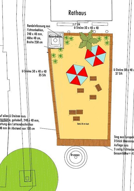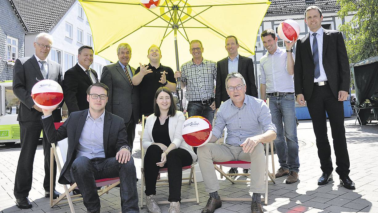 Peter Frischemeier, Allgemeiner Vertreter des Bürgermeisters, sowie auch Geschäftsführer des Werberings Brakel, und Alexander Kleinschmidt von der Wirtschaftsförderung, haben jetzt die Einzelheiten vorgestellt. Vorbild des „Stadtstrand" Projektes ist Vaihingen. „Die Kernstadt ist genauso groß wie Brakel. Und unser Marktplatz ist ebenfalls der passende Ort für so ein Event", sagt Peter Frischemeier. So soll nach Annentag mit dem Aufbau des etwa 21 mal 10 Meter großen „Sandkastens" mit einer 50 Zentimeter hohen Holzumrandung, die zugleich als weitere Sitzgelegenheit dient, begonnen werden. „Die Pflasterung des Marktplatzes nimmt durch den Aufbau keinen Schaden, selbst bei starkem Regen nicht. Es wird ein Schutz-Vlies eingebaut", beruhigt Christoph Rustemeyer vom Bauamt Brakel. Der Sand selbst werde später als Bausand weiterverwendet.